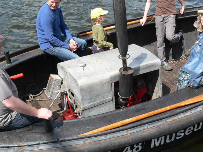 Festmacherboot erbaut 1945 mit Stahlrumpf und Junkers Gegenkolbenmotor 1HK 65 mit einem Zylinder. Leistung: 15PS (11KW) bei 300-1450 Umdrehungen mit 0,73l Hubraum. Im Zweitaktbetrieb treibt der Dieselkraftstoff durch Gleichstromspülung die Schraube über ein Wendegetriebe an.